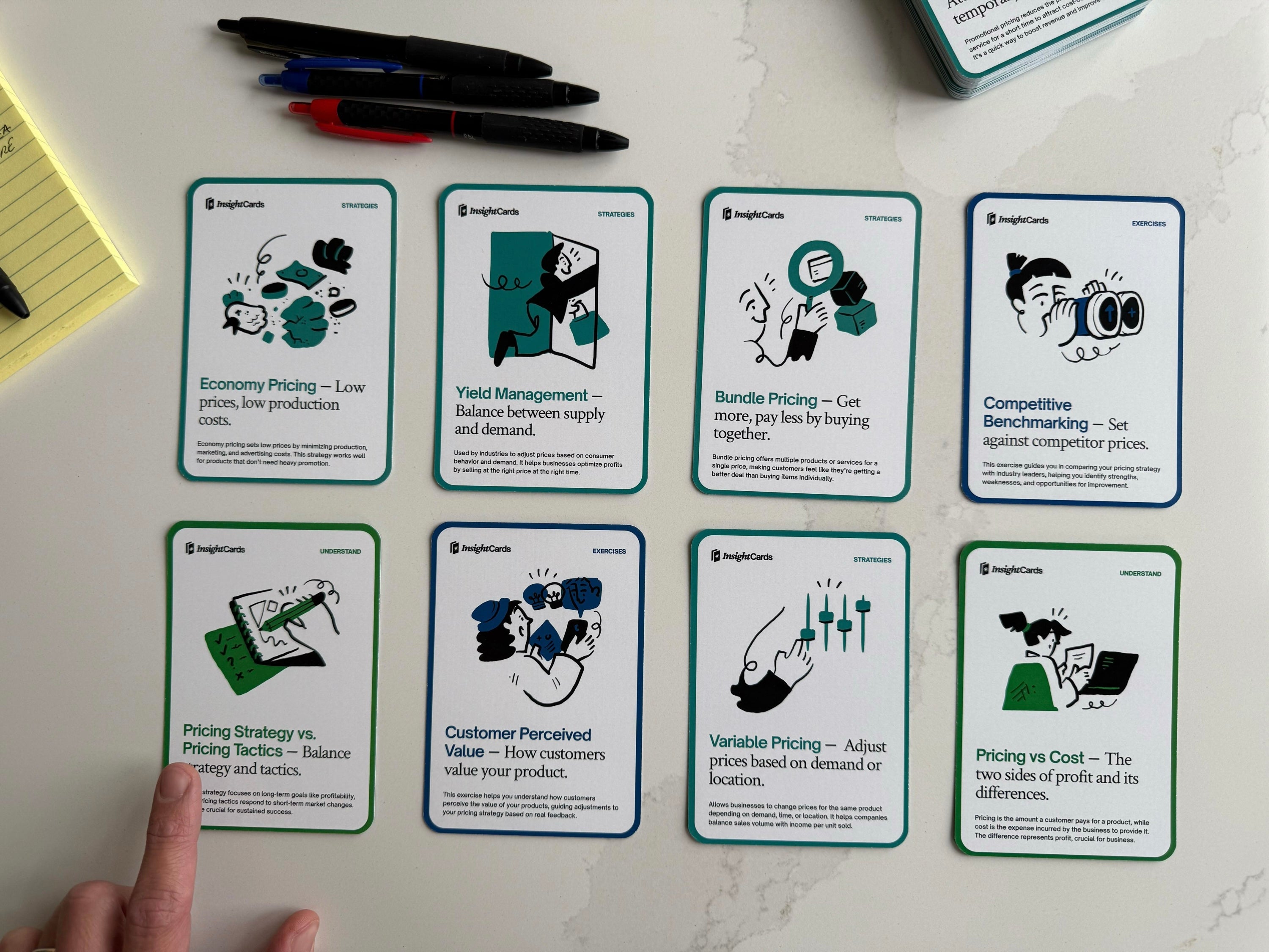 The Pricing Strategies Card Deck is designed to make pricing decisions faster, smarter, and more effective. Just pick a card, explore a strategy, and apply it to your business.