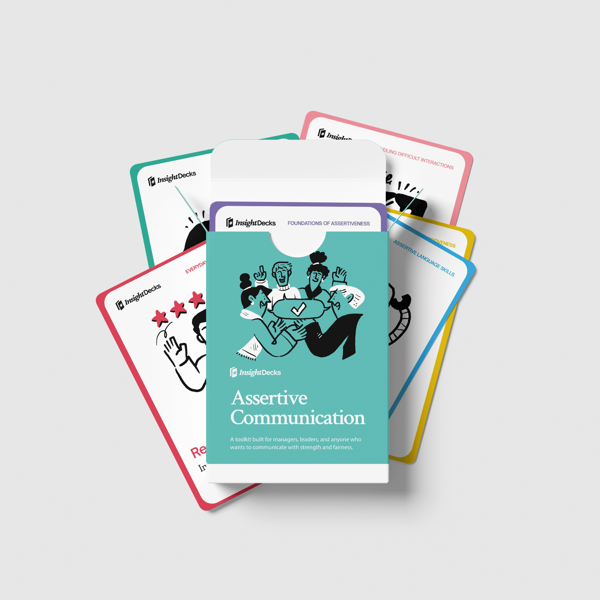 The Assertive Communication Deck makes difficult conversations simpler, clearer, and more effective. Just pick a card, explore an assertive technique, and apply it to achieve your goals.