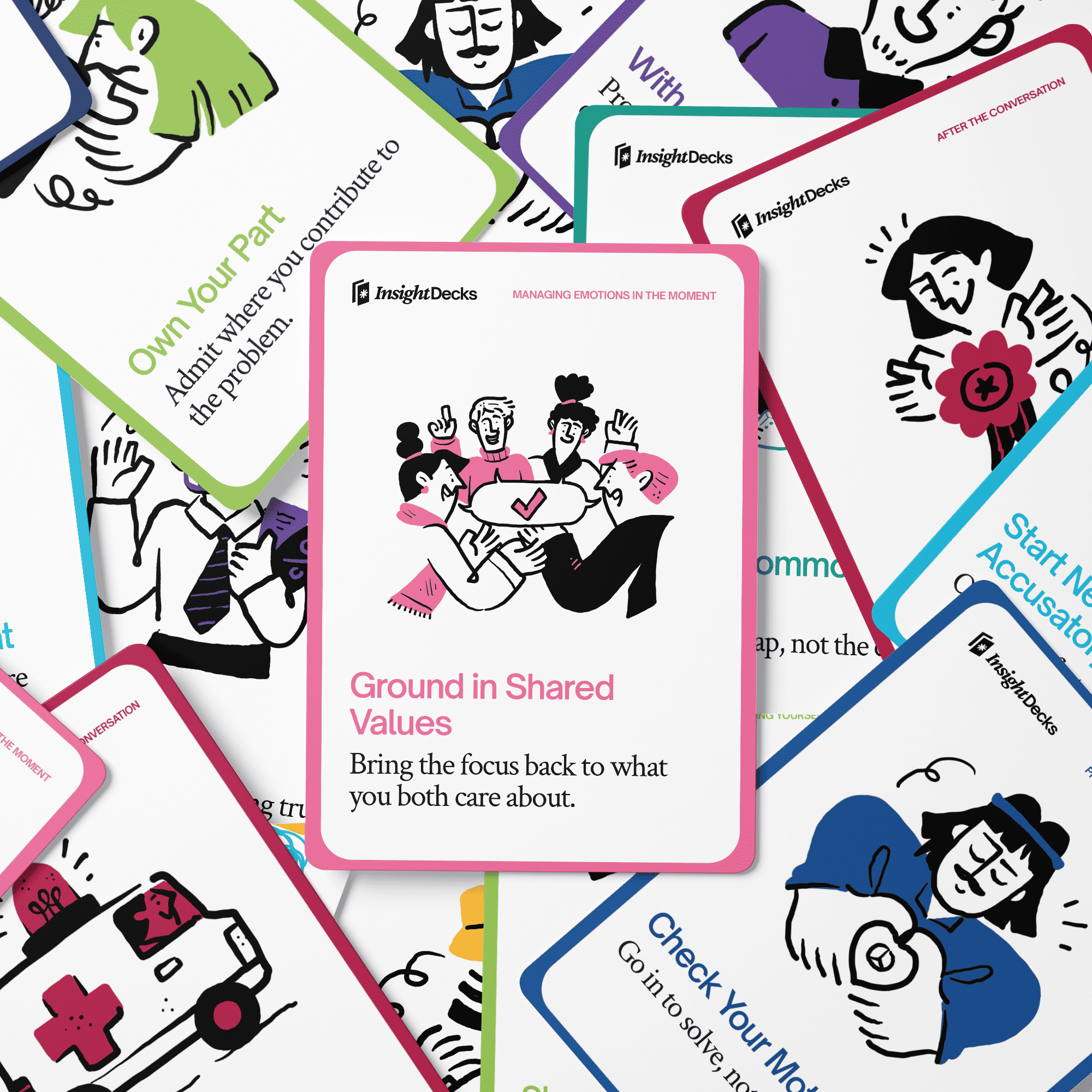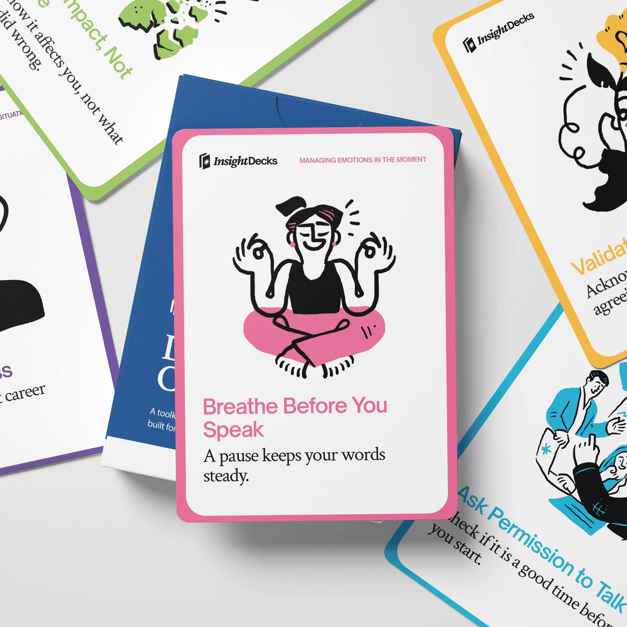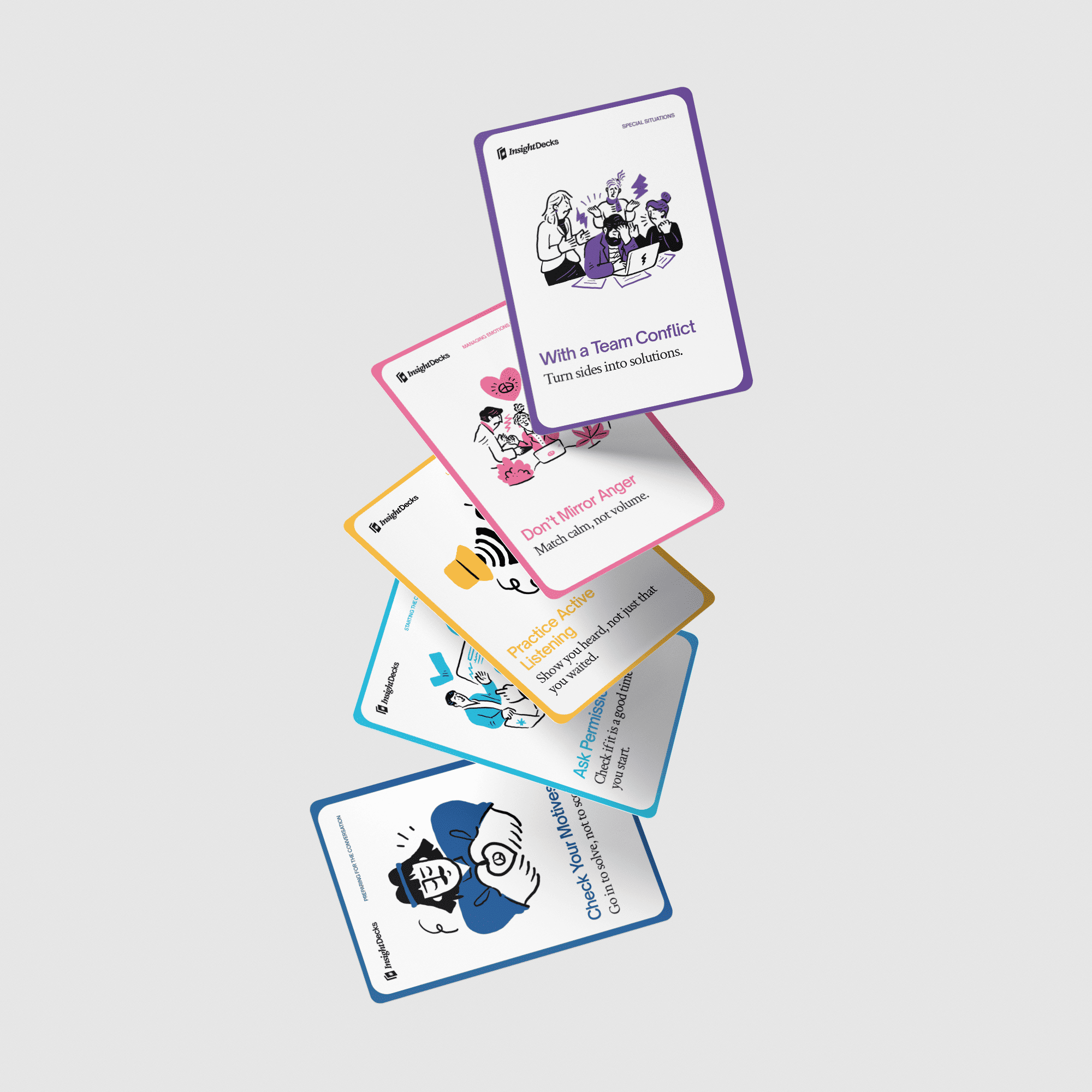 The Difficult Conversations Card Deck makes hard talks easier, calmer, and more constructive. Just pick a card, follow the step, and apply it to the moment that matters.