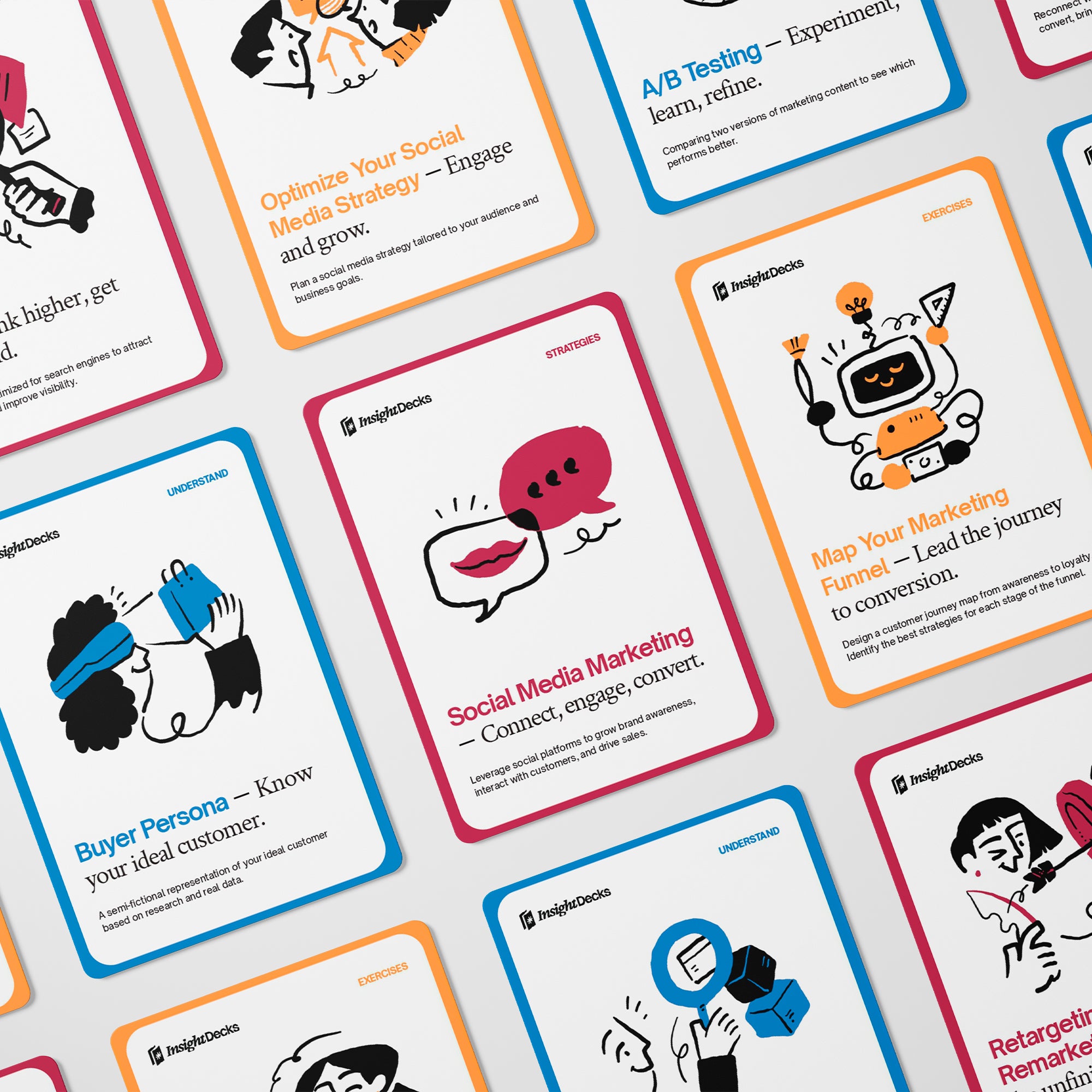 The Marketing Strategies Card Deck makes marketing simpler, smarter, and more effective. Just pick a card, explore a strategy, and apply it to your business.